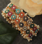Enhance your jewelry collection with our stunning PHOOL BANGLES. Made with multi colored beads and gold plating, these bangles are perfect for adding a pop of color to any outfit. Elevate your style with these versatile and eye-catching accessories.
